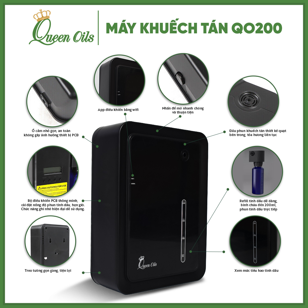 Tiết kiệm: với CHẾ ĐỘ CÀI ĐẶT THÔNG MINH, bạn có thể cài đặt thời gian chạy, chế độ phun – nghỉ của máy, tốc độ phun to – nhỏ theo nhu cầu sử dụng. Vì thế, QO-200 sẽ giúp bạn tiết kiệm tối đa tinh dầu, tiết kiệm thời gian (châm 1 lần sử dụng 1 tháng)
